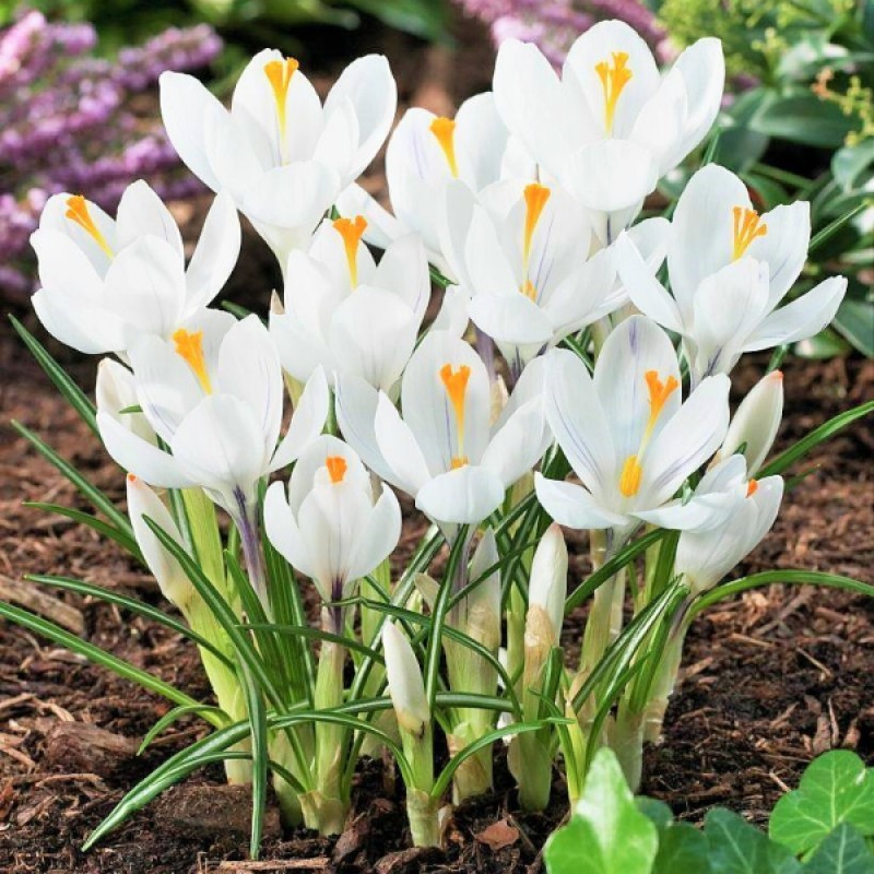 Крокус Жанна Д’арк – это раннецветущее растение, которое привлекает внимание своими крупными цветками и белоснежными лепестками. Высота растения достигает 15 сантиметров, что делает его идеальным для выращивания как на клумбах, так и в горшках на подоконниках. Этот сорт крокусов не требователен к погодным условиям и почве, а также устойчив к засухе.